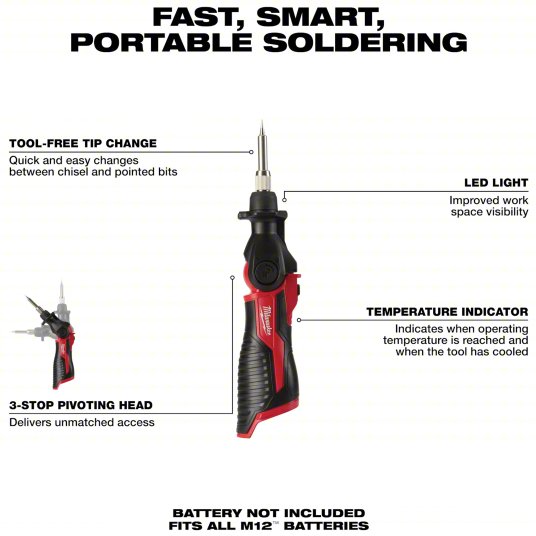 MILWAUKEE 2488-20 M12 12-Volt Lithium-Ion Cordless Soldering Iron (Tool-Only)