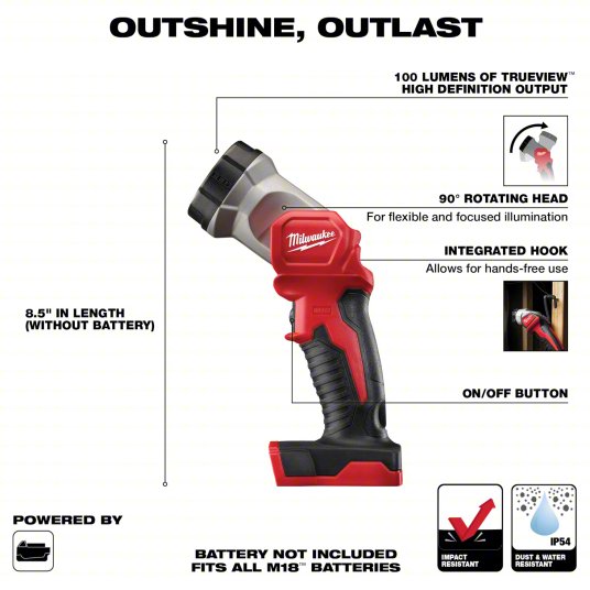 MILWAUKEE 2656-20 M18 18V 1/4 Inch Lithium Ion Hex Impact Driver with 1,500 Inch Pounds of Torque and LED Lighting Array (Battery Not Included, Power Tool Only)